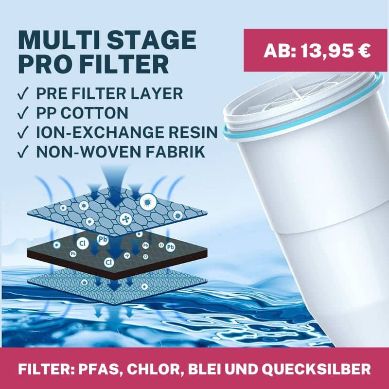 Mehrstufiger PRO-Filter gegen PFAS, Chlor, Blei, Quecksilber und andere Schadstoffe.