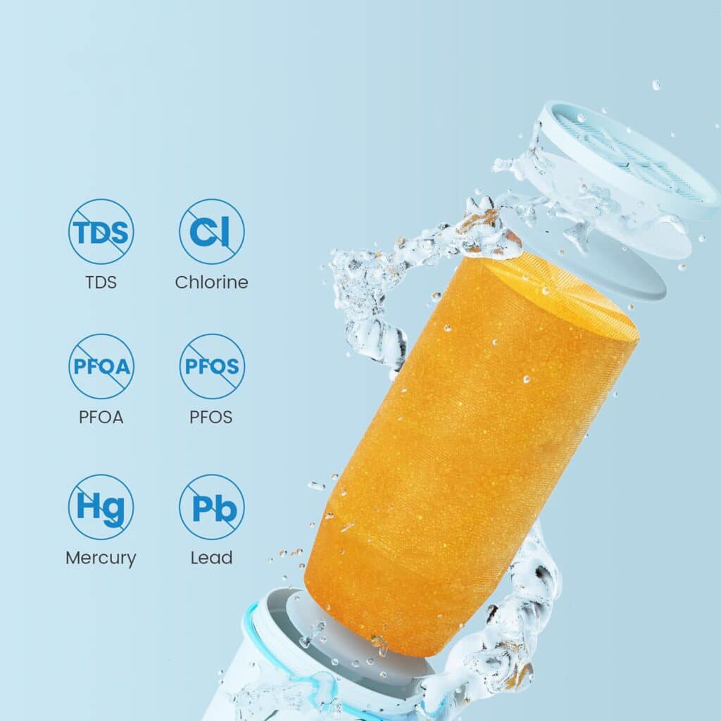 Er filtert PFAS, Chlor, Blei und Quecksilber aus Ihrem Trinkwasser und reduziert effektiv die Gesamtmenge gelöster Feststoffe (TDS) von durchschnittlich 260 auf 0. So ist die Sicherheit Ihres Trinkwassers gewährleistet.
