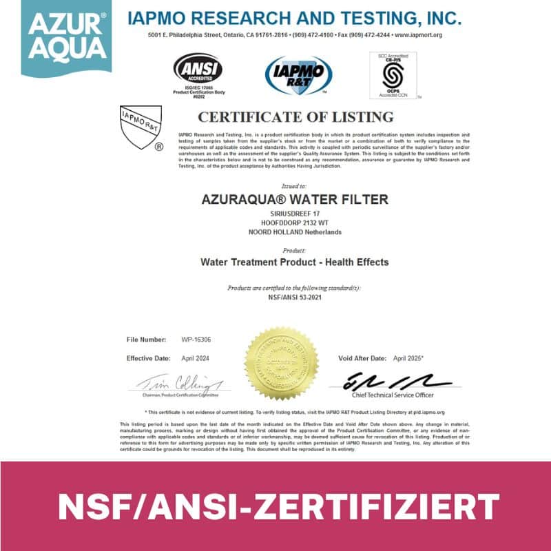 IAPMO- und NSF/ANSI 42 & 53-zertifiziert