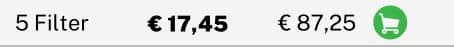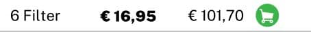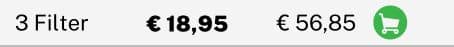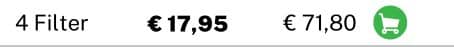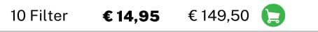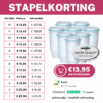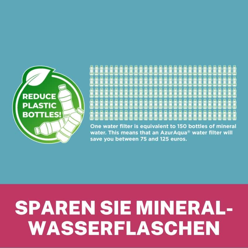 Mit dem AzurAqua Wasserfilter können Sie Ihr Wasser durchschnittlich fünf Wochen lang filtern. Ein Filter entspricht 150 Flaschen Mineralwasser (à 50 cl). Das bedeutet, dass Sie mit einem AzurAqua® Wasserfilter über 125 € sparen! Das sind durchschnittlich nur 19 Cent pro Liter gefiltertes Wasser.
