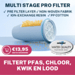 Unsere Wasserfilter bestehen aus hochwertiger PP-Baumwolle und Ionenaustauscherharz. Sie filtern PFAS, Chlor, Blei und Quecksilber aus Leitungswasser.
